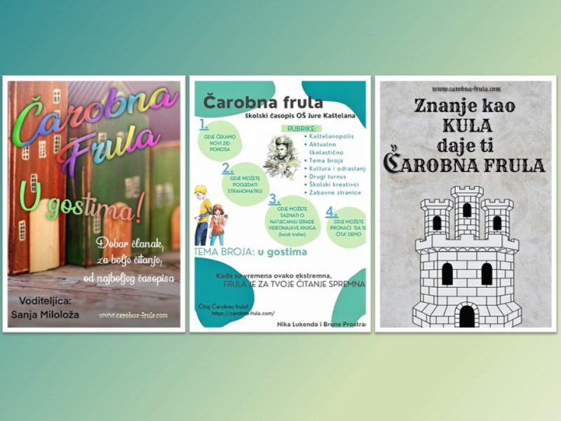 Promidžbeni plakati čiji je začetak nastao na satu kulture i medija u radionici U svijetu reklama, a dovršetak se dogodio u kućnim radionicama naših osmaša, ušli su u međurazredni nagradni natječaj Čarobne frule u kojem su sudjelovali učenici 8. b i 8. c razreda. Osim Uredništva Čarobne frule, radove su procjenjivali stručnjaci Vinka Mortigjija Anušić (ŠPUD), Vilim Plužarić, Nandi Plužarić (CROATIAN TRAGEDIES) i Dubravka Đuretek-Šuper (OŠ JURE KAŠTELANA), a svoje su glasove virtualno dali i zainteresirani članovi zbornice OŠ Jure Kaštelana.